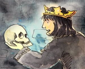 Tomorrow is Shakespeare’s birthday and to celebrate I thought I would do an illustration of Hamlet talking to York’s skull.